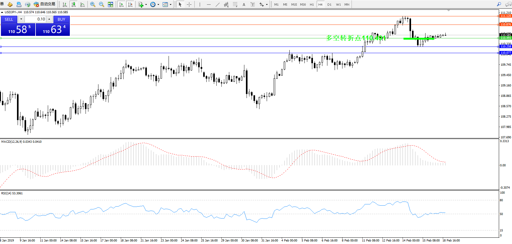 交易策略:110.491上方看涨,目标110.876、111.120