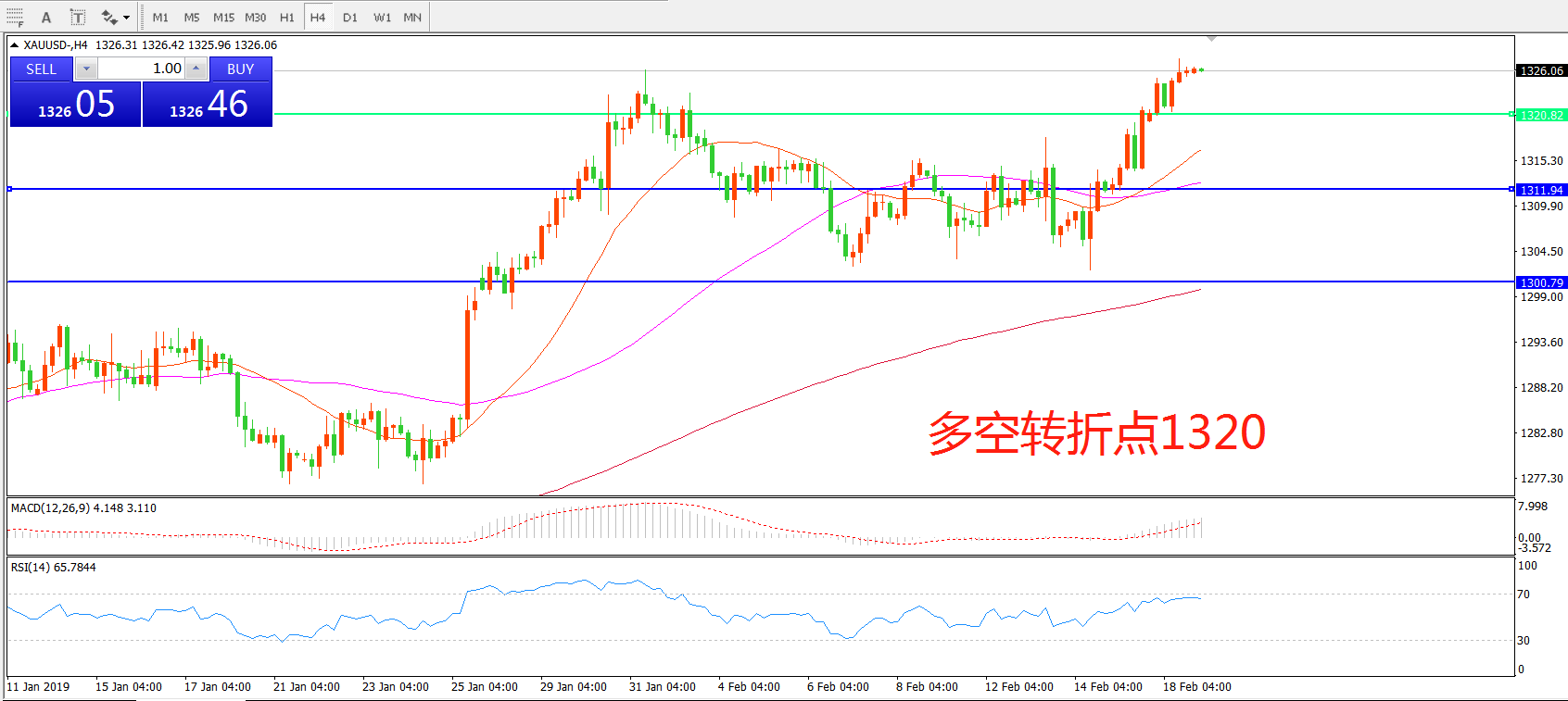 多空转折点:1320.00