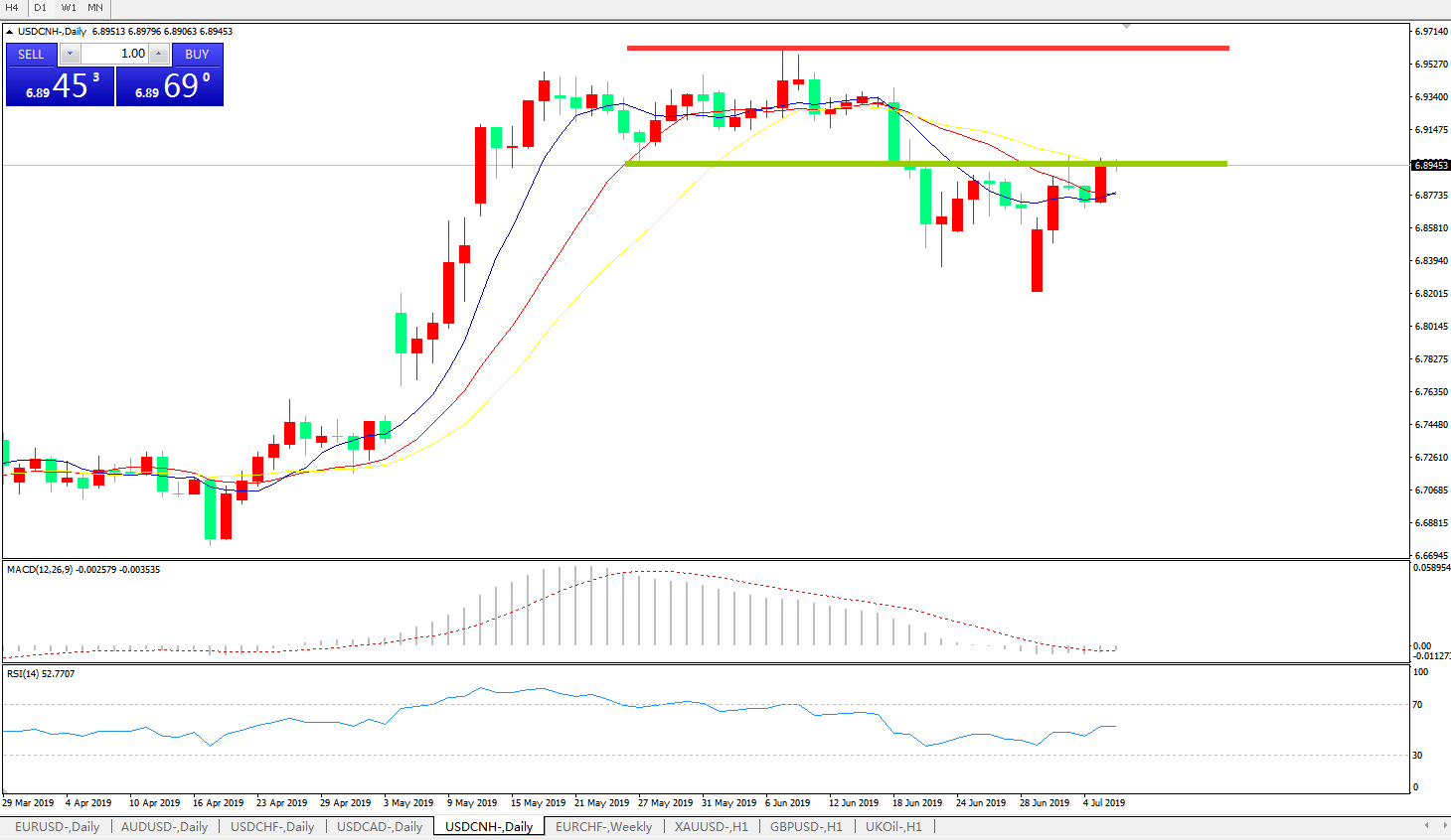 交易策略6.9000之下,看跌,目标价位为6.8100,然后为6.7600