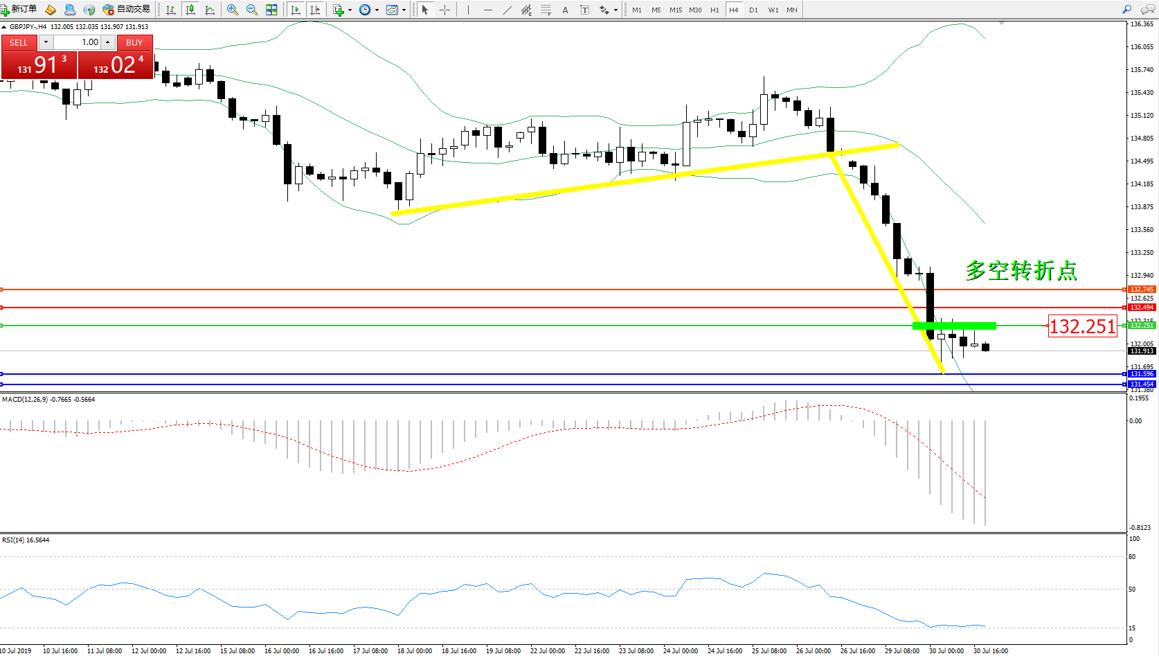 交易策略:132.251下方看跌,目标131.596131.454