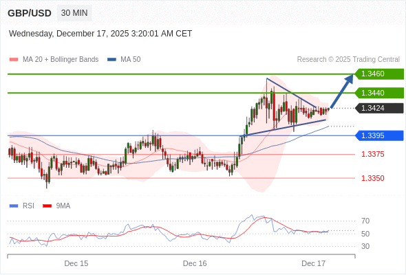 在 1.3395 之上,看涨,目标价位为 1.3440 ,然后为 1.3460 。