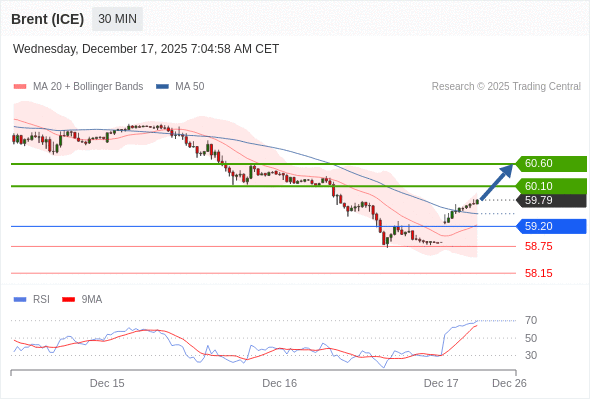 在 59.20 之上,看涨,目标价位为 60.10 ,然后为 60.60 。