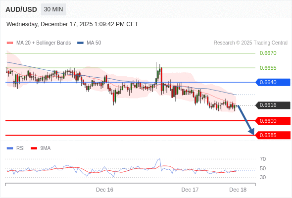 在 0.6640 之下,看跌,目标价位为 0.6600 ,然后为 0.6585 。
