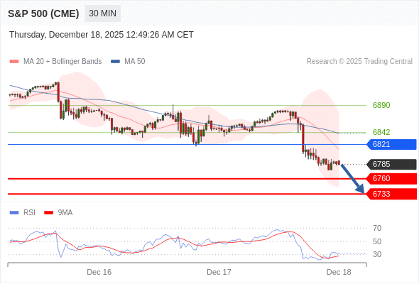交易策略: 在 6821 之下,看跌,目标价位为 6760 ,然后为 6733 。