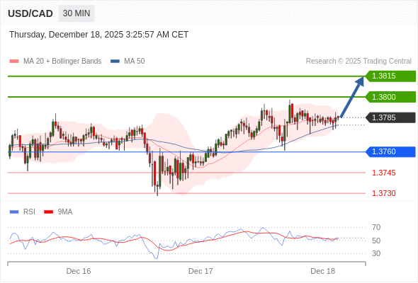在 1.3760 之上,看涨,目标价位为 1.3800 ,然后为 1.3815 。