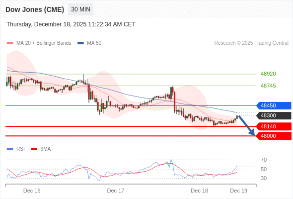 在 48450 之下,看跌,目标价位为 48140 ,然后为 48000 。