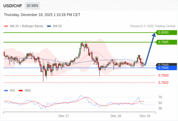 在 0.7945 之上,看涨,目标价位为 0.7985 ,然后为 0.8000 。