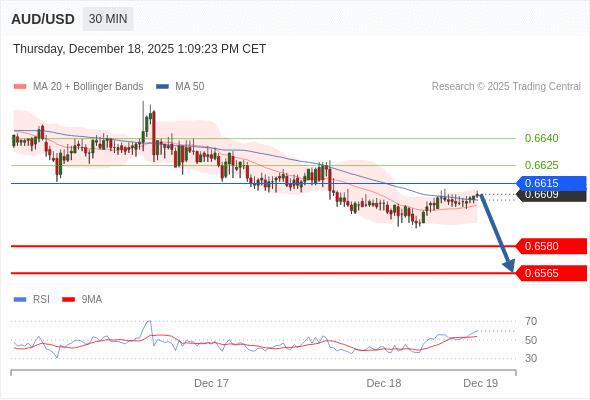 在 0.6615 之下,看跌,目标价位为 0.6580 ,然后为 0.6565 。