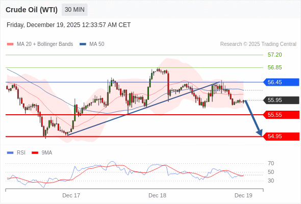 在 56.45 之下,看跌,目标价位为 55.55 ,然后为 54.95 。