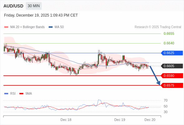 在 0.6625 之下,看跌,目标价位为 0.6590 ,然后为 0.6575 。
