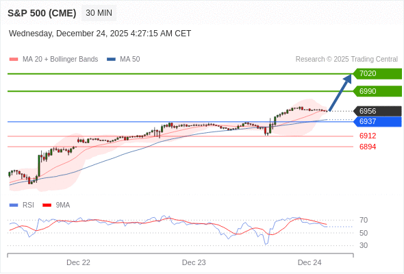 在 6937 之上,看涨,目标价位为 6990 ,然后为 7020 。