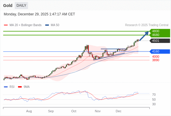 在 4160 之上,看涨,目标价位为 4680 ,然后为 4800 。