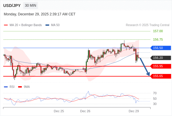 在 156.50 之下,看跌,目标价位为 155.95 ,然后为 155.65 。