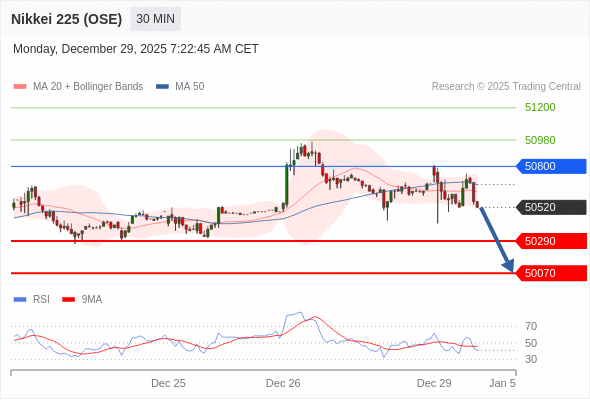 在 50800 之下,看跌,目标价位为 50290 ,然后为 50070 。
