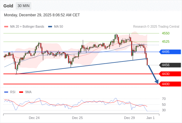 交易策略: 在 4495 之下,看跌,目标价位为 4430 ,然后为 4400 。
