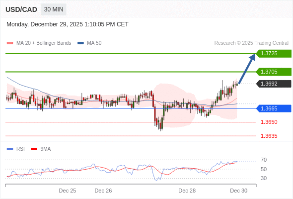 在 1.3665 之上,看涨,目标价位为 1.3705 ,然后为 1.3725 。