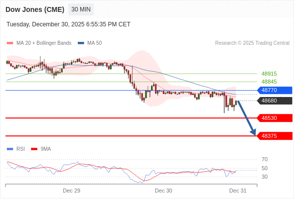 在 48770 之下,看跌,目标价位为 48530 ,然后为 48375 。