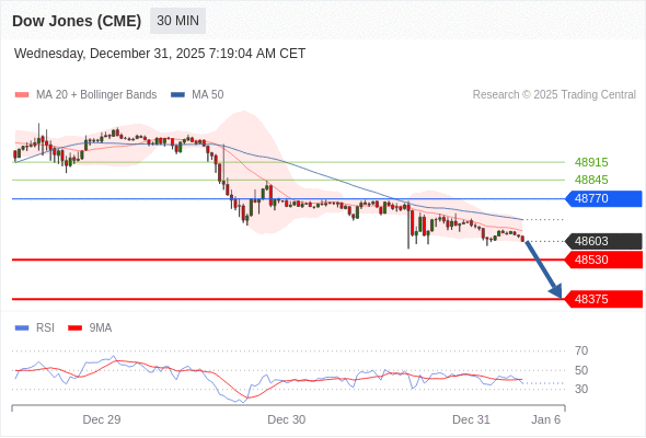 在 48770 之下,看跌,目标价位为 48530 ,然后为 48375 。
