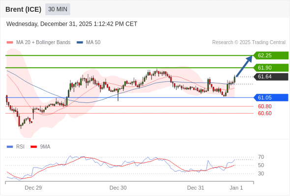 在 61.05 之上,看涨,目标价位为 61.90 ,然后为 62.25 。