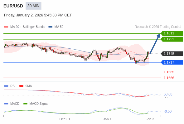 欧元/美元 当日内 : 看涨,当 1.1717 未被跌破。