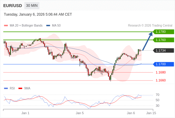 在 1.1700 之上,看涨,目标价位为 1.1760 ,然后为 1.1780 。