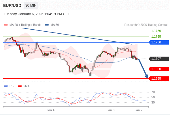 交易策略: 在 1.1750 之下,看跌,目标价位为 1.1680 ,然后为 1.1655 。