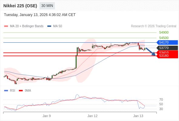 在 54170 之下,看跌,目标价位为 53410 ,然后为 53180 。