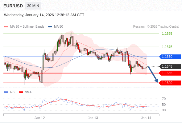 交易策略: 在 1.1660 之下,看跌,目标价位为 1.1635 ,然后为 1.1620 。