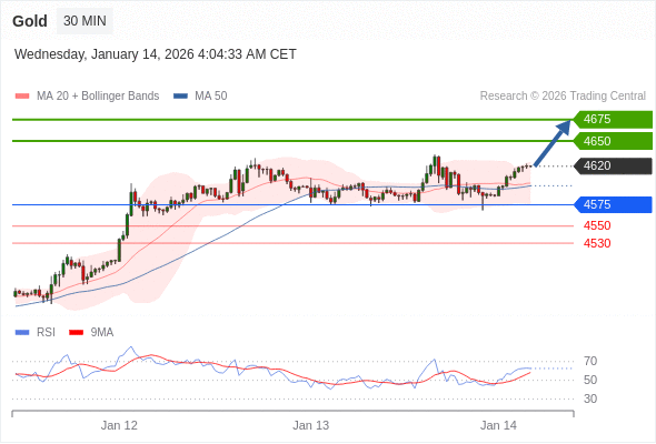 在 4575 之上,看涨,目标价位为 4650 ,然后为 4675 。