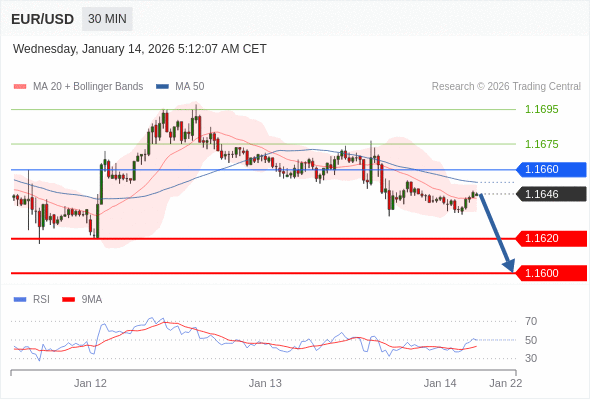 在 1.1660 之下,看跌,目标价位为 1.1620 ,然后为 1.1600 。