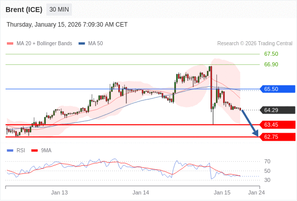 在 65.50 之下,看跌,目标价位为 63.45 ,然后为 62.75 。