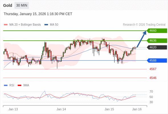 在 4588 之上,看涨,目标价位为 4636 ,然后为 4660 。