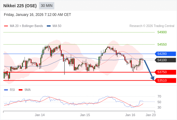 在 54280 之下,看跌,目标价位为 53750 ,然后为 53510 。