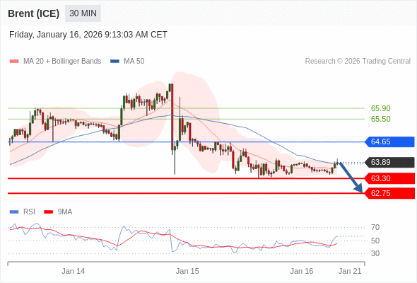 在 64.65 之下,看跌,目标价位为 63.30 ,然后为 62.75 。