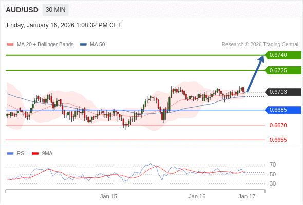 在 0.6685 之上,看涨,目标价位为 0.6725 ,然后为 0.6740 。