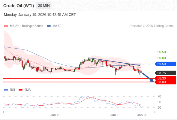 交易策略: 在 59.50 之下,看跌,目标价位为 58.30 ,然后为 58.00 。