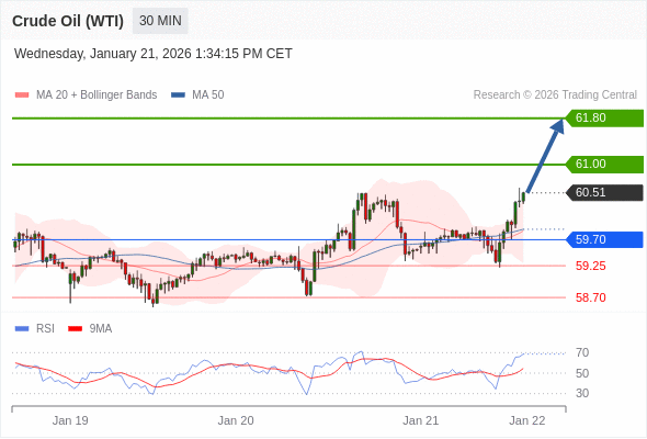 在 59.70 之上,看涨,目标价位为 61.00 ,然后为 61.80 。