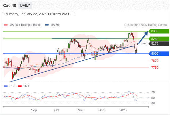 Cac 40 短线: 在8000之上,看涨。
