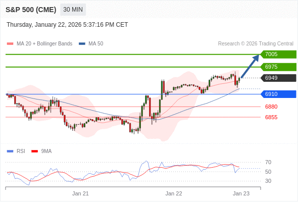 在 6910 之上,看涨,目标价位为 6975 ,然后为 7005 。