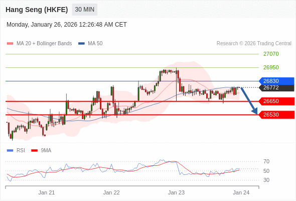 香港恒生指数期货 当日内: 朝26650运行。