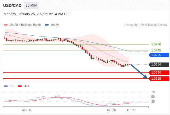 在 1.3725 之下,看跌,目标价位为 1.3650 ,然后为 1.3625 。