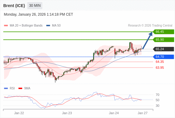 在 64.70 之上,看涨,目标价位为 65.90 ,然后为 66.45 。