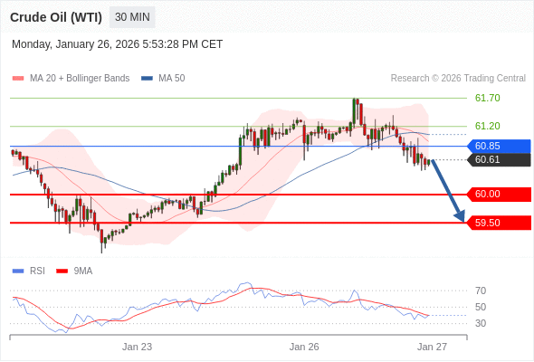 在 60.85 之下,看跌,目标价位为 60.00 ,然后为 59.50 。