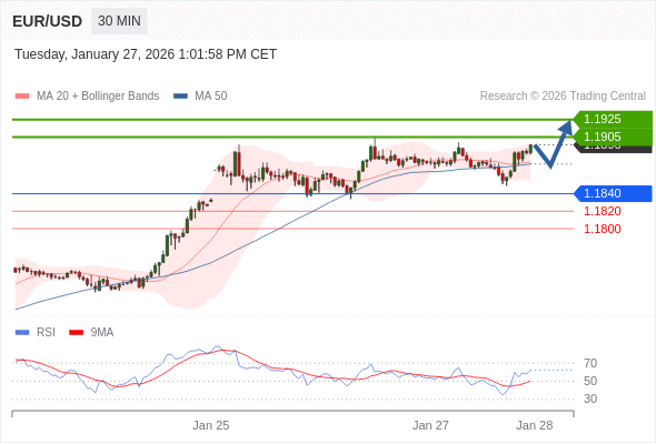 在 1.1840 之上,看涨,目标价位为 1.1905 ,然后为 1.1925 。