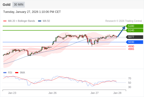 在 5030 之上,看涨,目标价位为 5140 ,然后为 5180 。