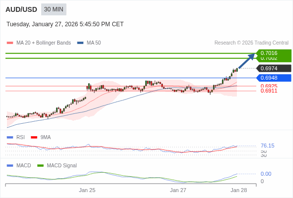 交易策略: 看涨,当 0.6948 为支撑位。