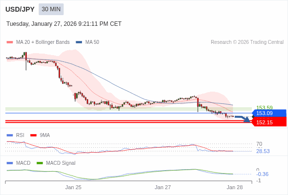 美元/日元 当日内 : 看跌,在 153.09 之下。