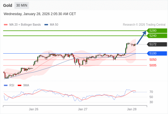 在 5100 之上,看涨,目标价位为 5240 ,然后为 5280 。