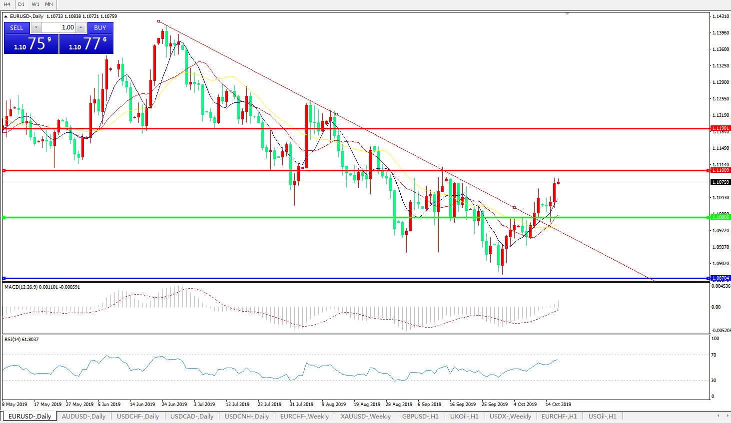 交易策略:1.1000上方看涨,目标1.1100、1.1190