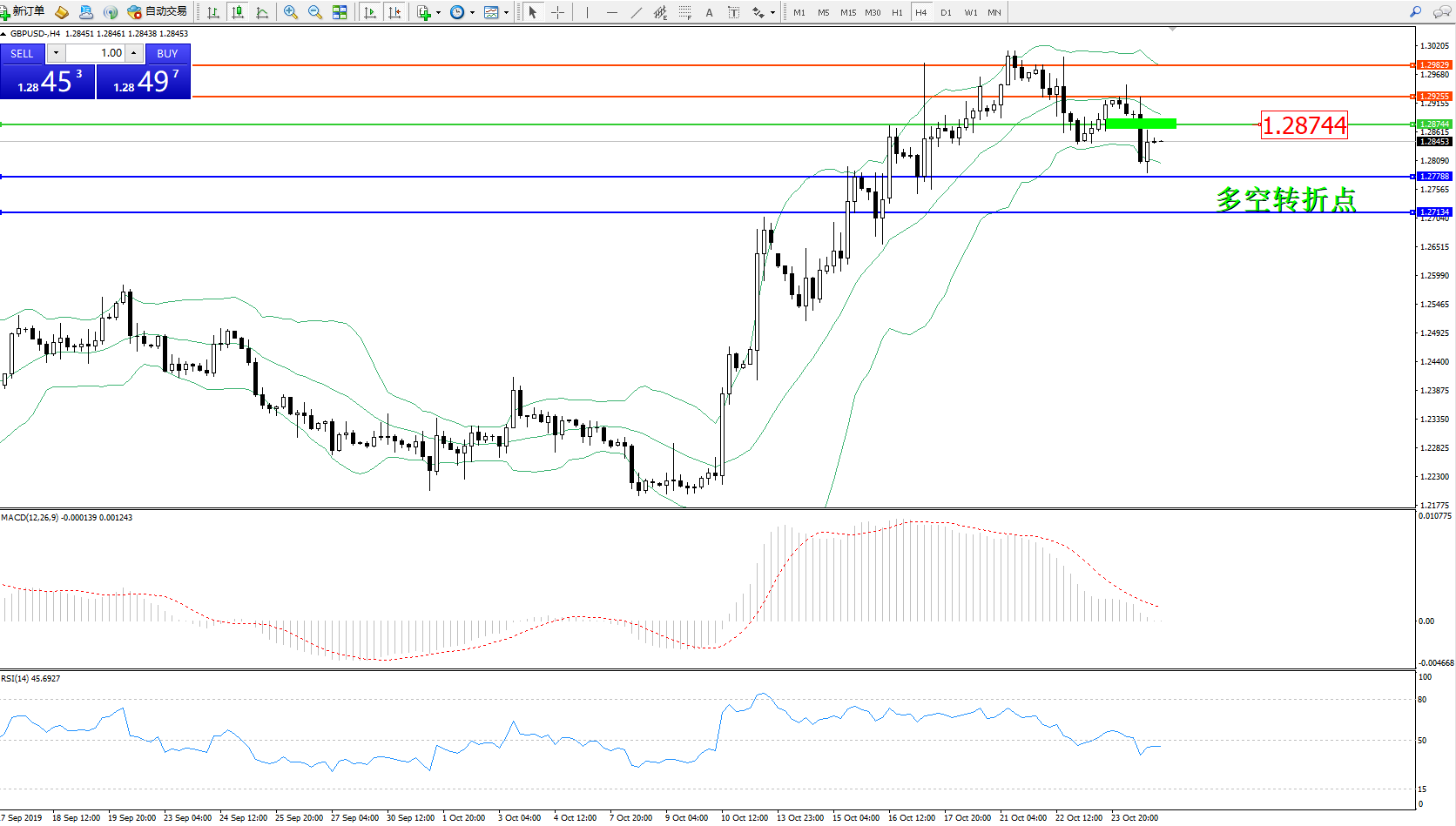 交易策略:1.28744下方看跌,目标1.27788、1.27134